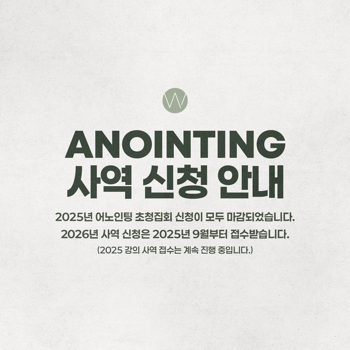 #어노인팅 #사역신청안내 올해 2025년 사역신청은 모두 마감되었고,내년 2026년 사역신청을 현재 접수 중입니다. 지나온 시간 속에서 만난 지역 곳곳의 교회와 예배자들, 그리고 앞으로 만나게 될 교회와 예배자들 모든분들...