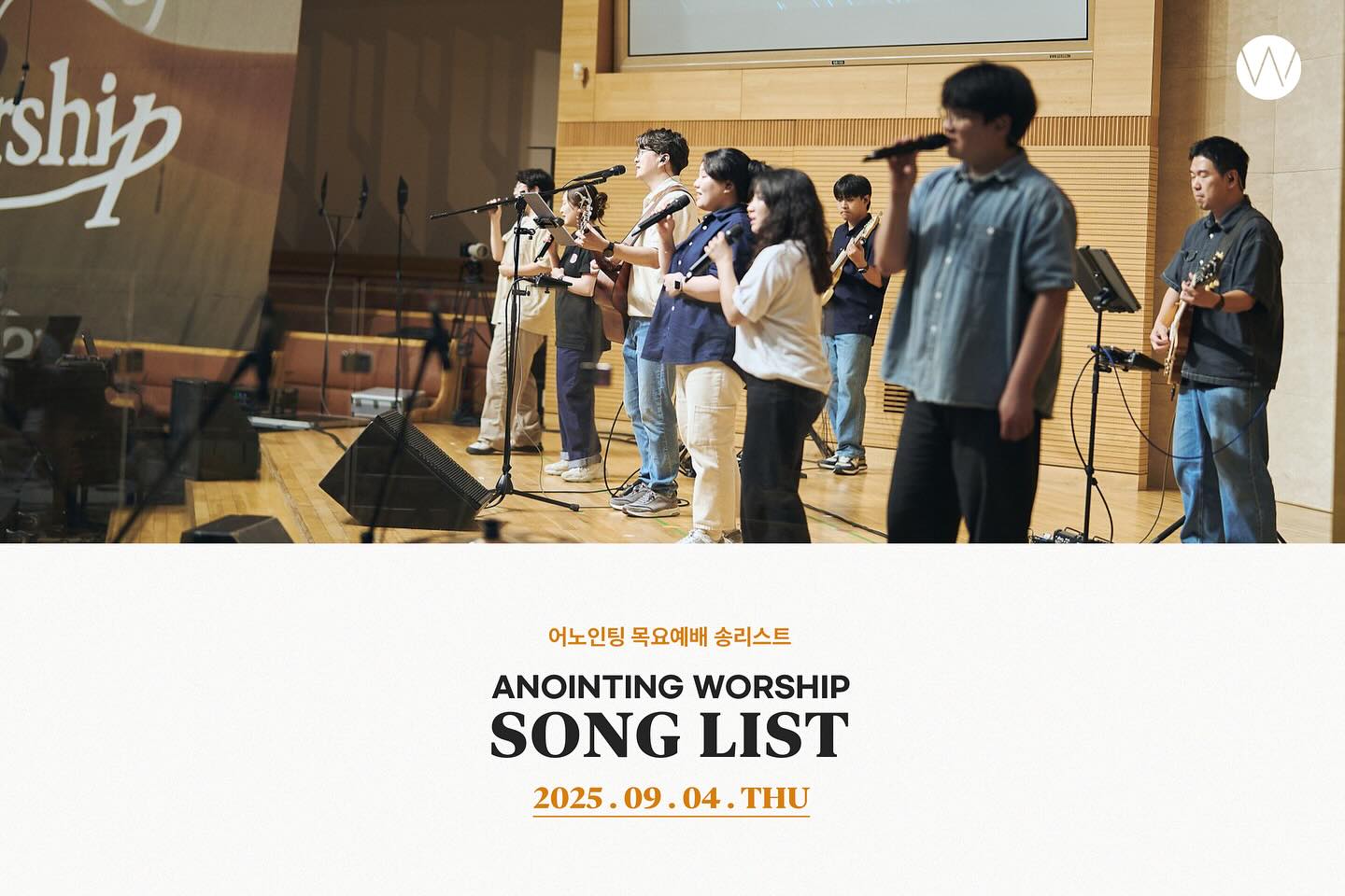 #어노인팅 #목요예배 #20250904 #Anointing_Thursday_Worship #Songlist 예배인도_소병찬 간사 [광고] ■ 2025년 𝟗월 예배 : 𝟎𝟒일 / 𝟏𝟏일 / 𝟏𝟖일 / 𝟐𝟓일■ 𝐀𝐧𝐨𝐢𝐧𝐭𝐢𝐧𝐠 정규 14집 발매 2025년 9...
