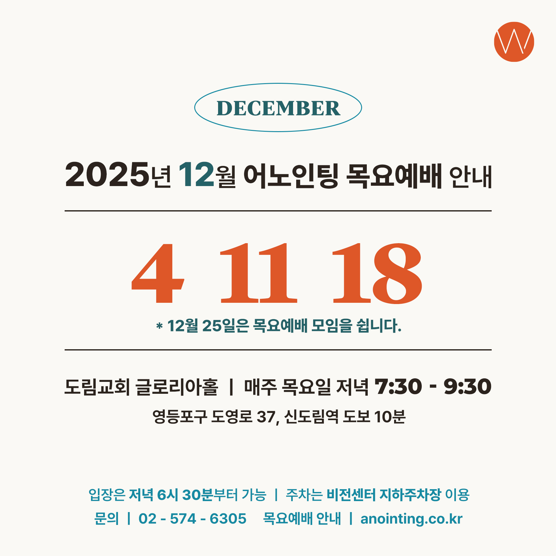 2025년 12월 어노인팅 목요예배 안내