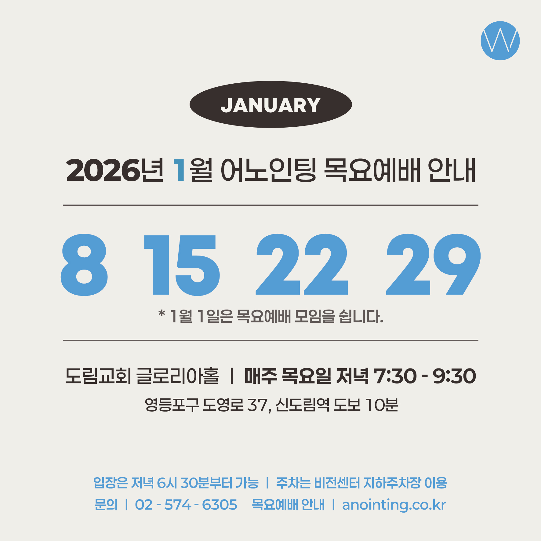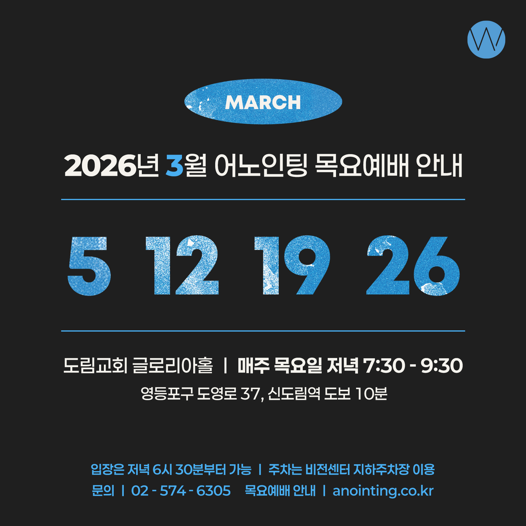2026년 3월 어노인팅 목요예배 안내