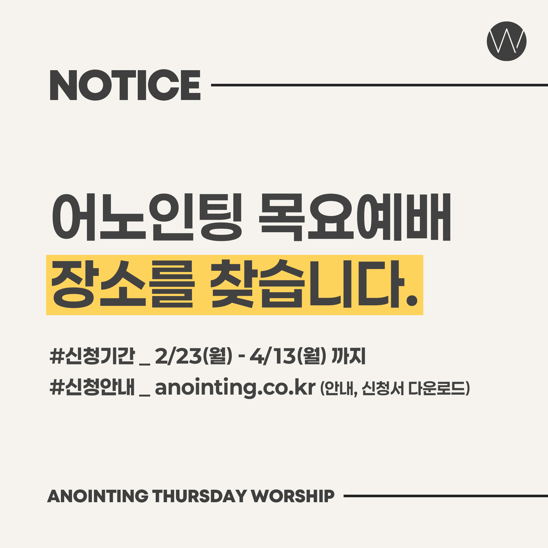 어노인팅 목요예배 장소이전