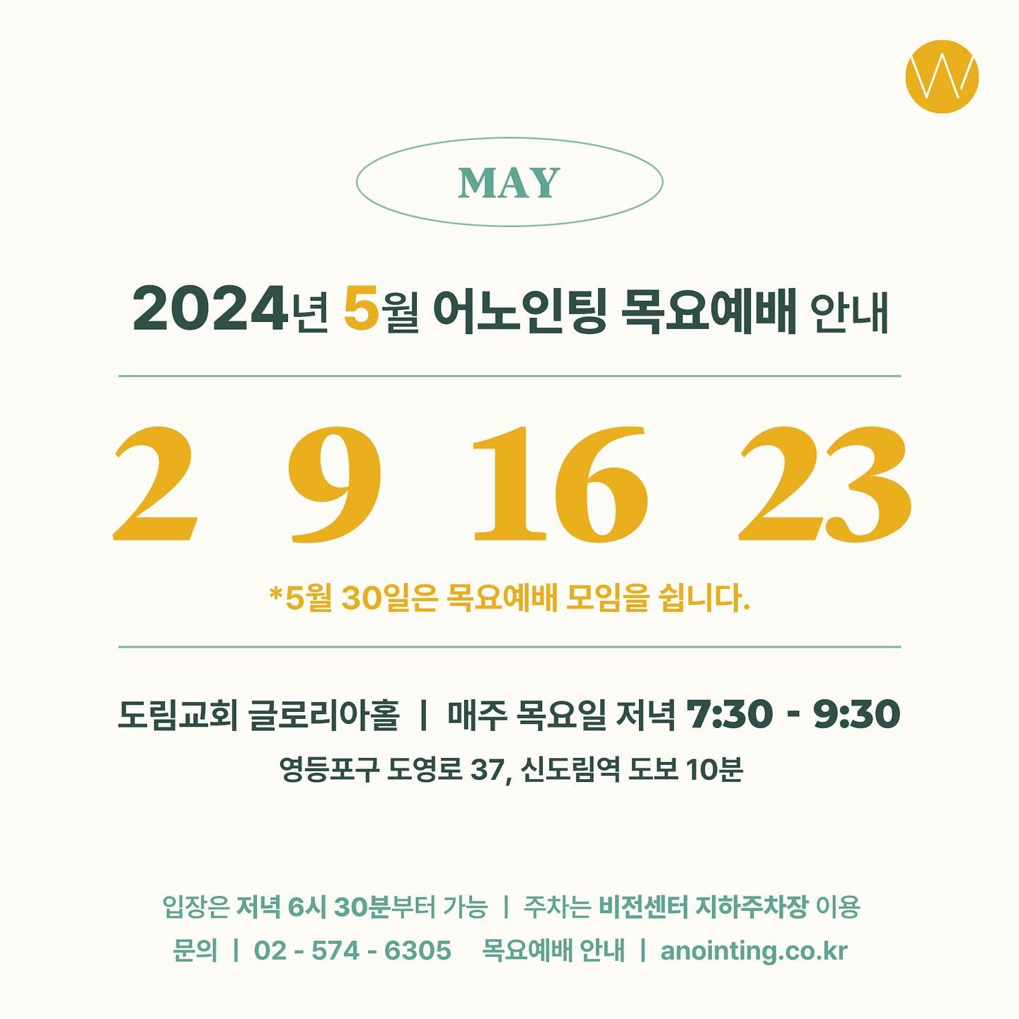 2024년 5월 예배 안내입니다. (*30일 쉼!)