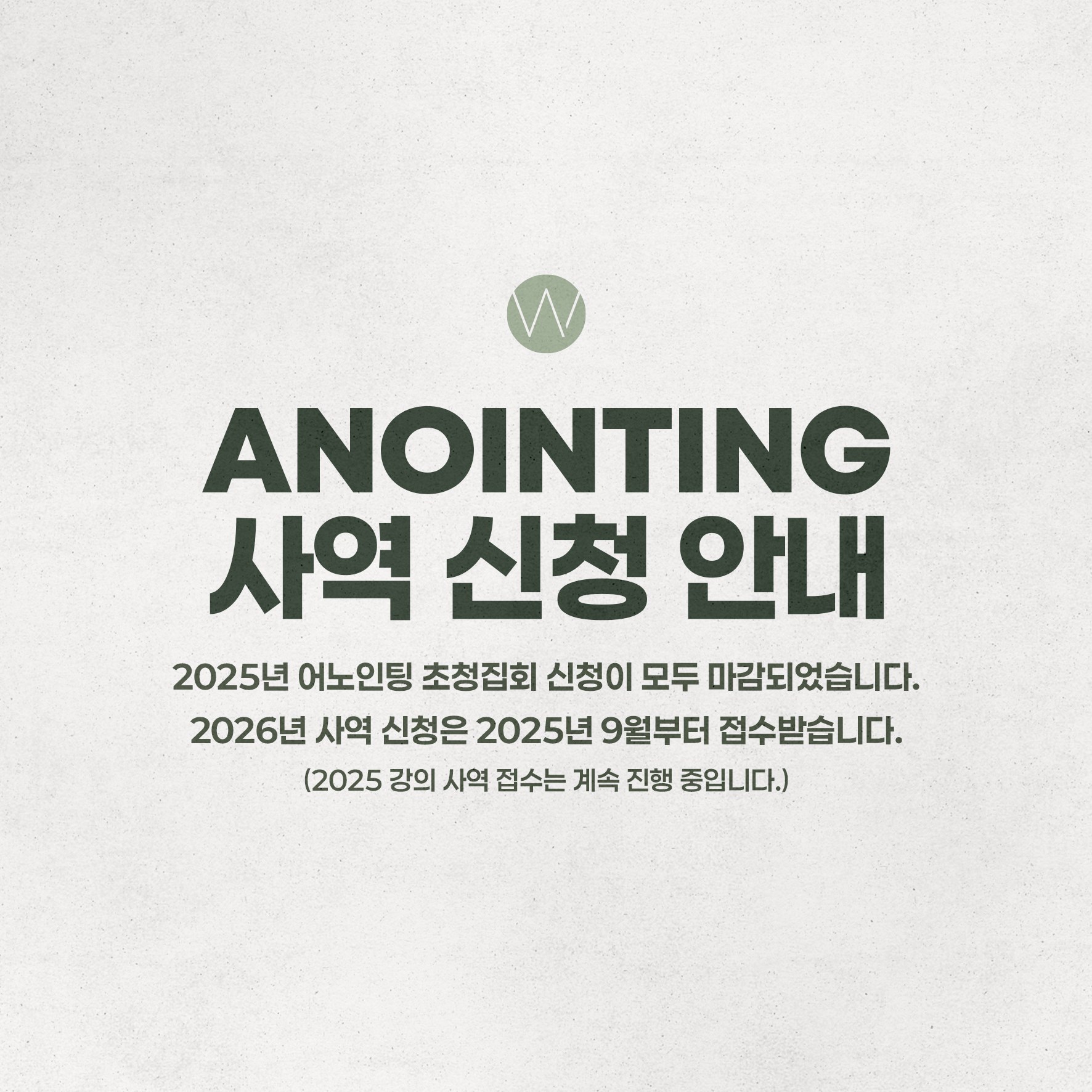 사역 신청 및 문의 전화 : 02-574-6305 (월-금, 11AM ~ 5:30PM) E-mail : welcome@anointing.co.kr