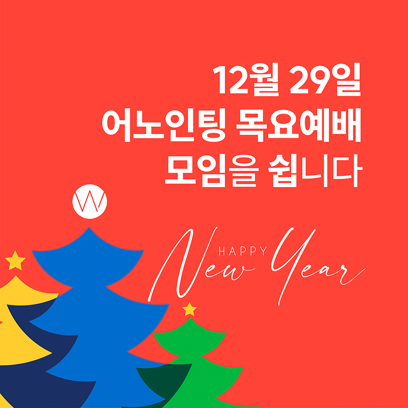 12월 29일 어노인팅 목요예배 모임을 쉽니다. Happy New Year!