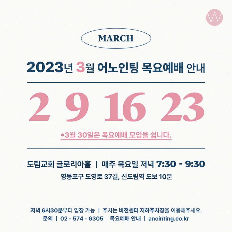 ■ 7:30 PM ㅣ도림교회 글로리아 홀 (1,2호선 신도림역 2번출구)
