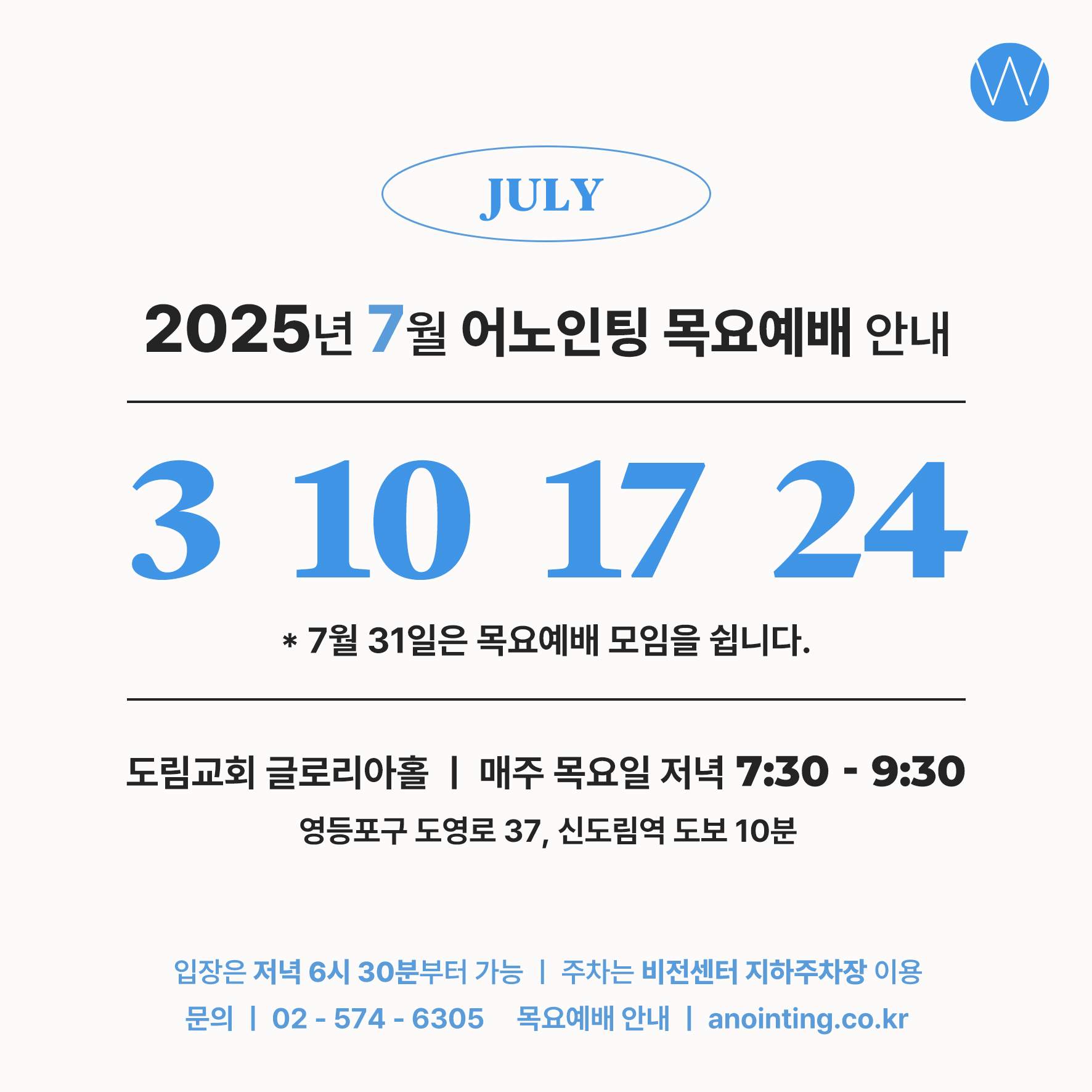 7월 31일ㅣ목요예배 모임을 쉽니다