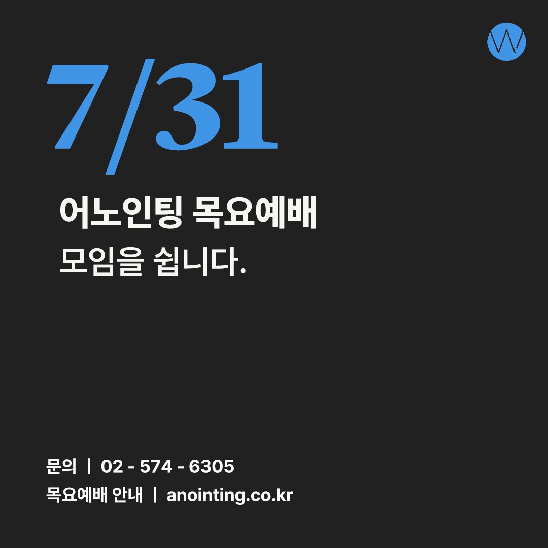 7월 31일 목요예배 모임을 쉽니다